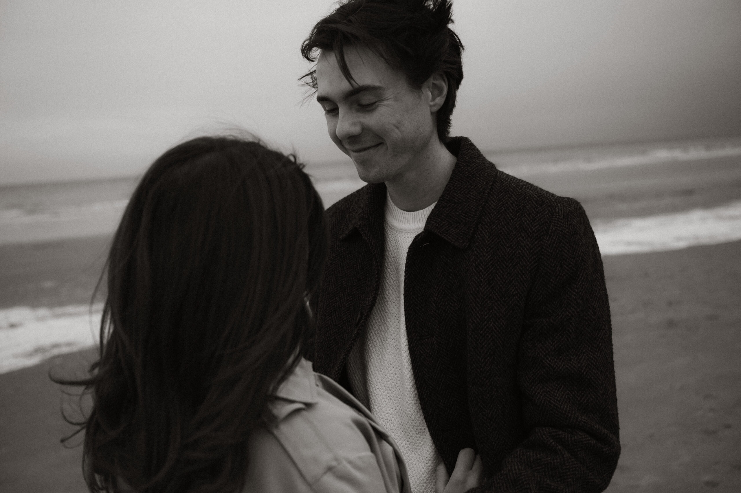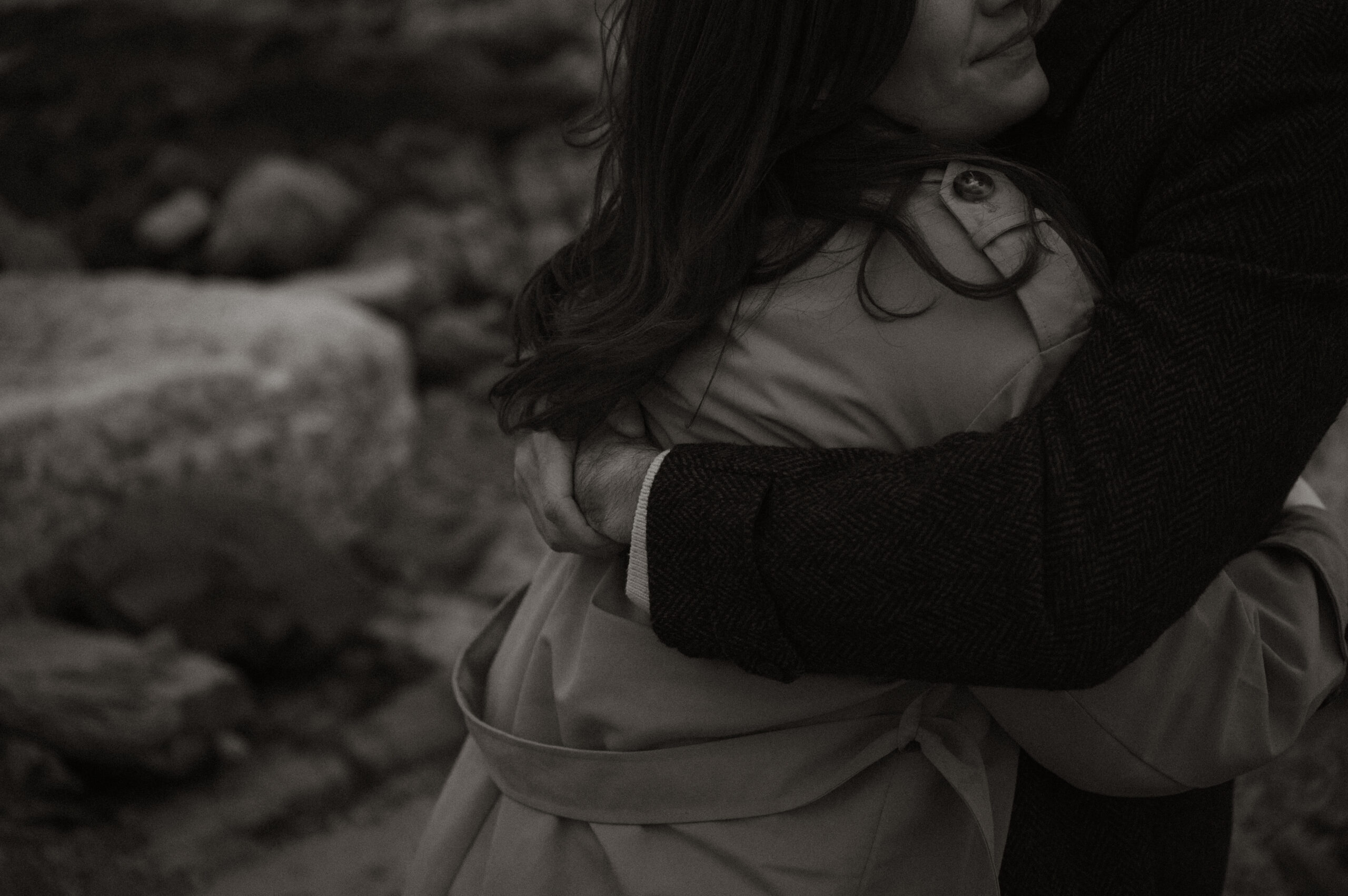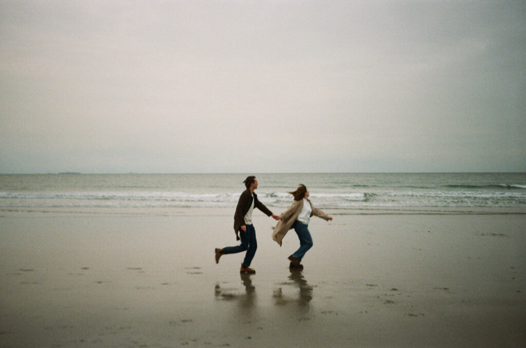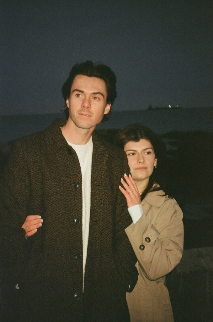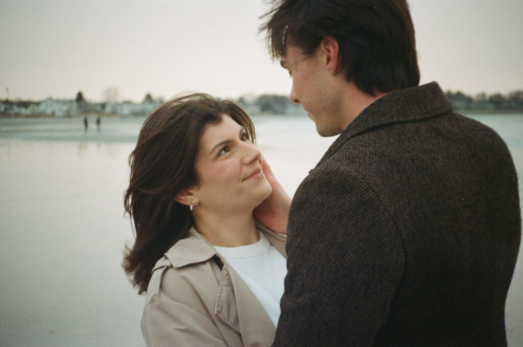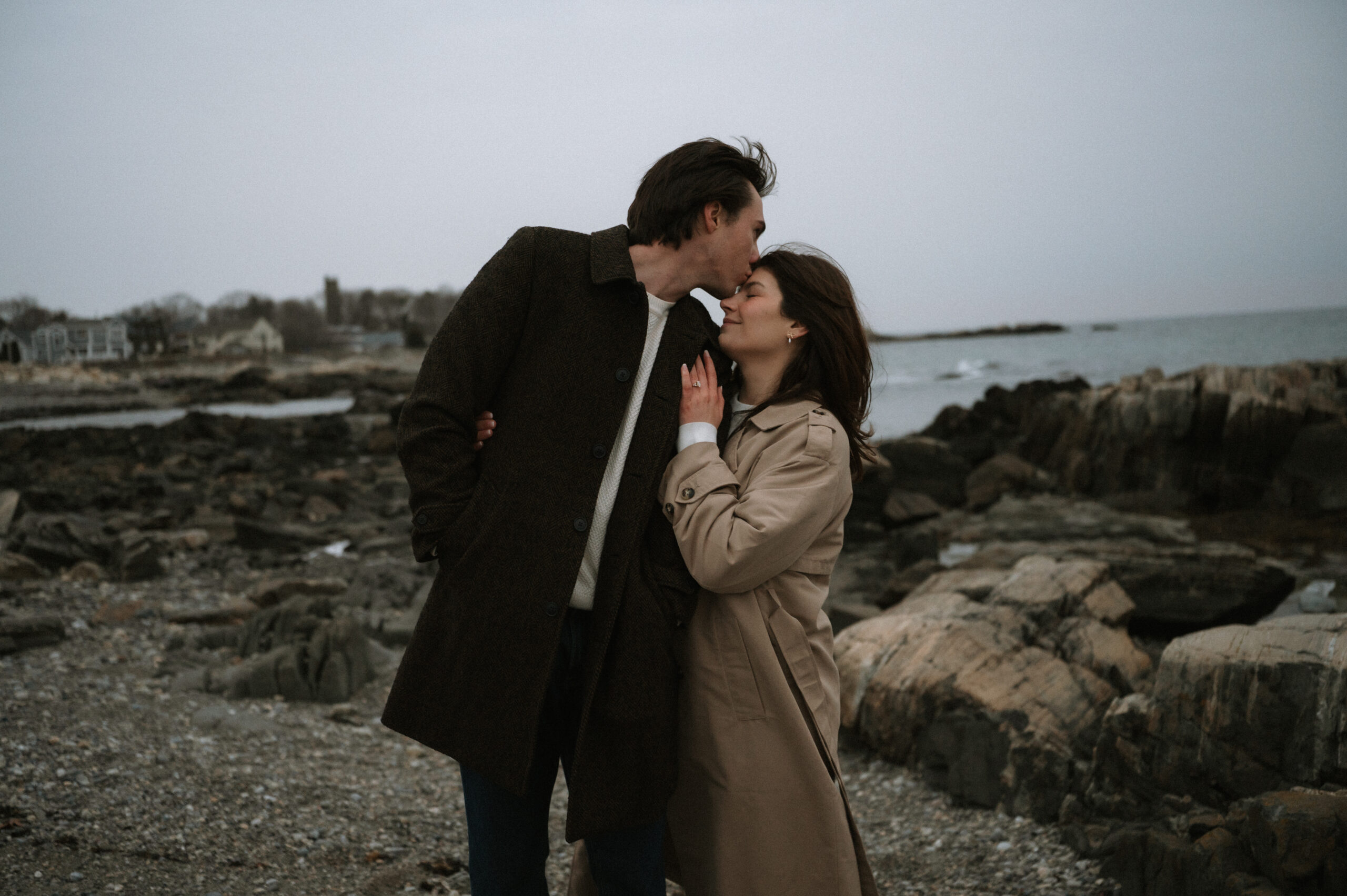 Cinematic engagement photography New England Film-inspired engagement photos New England Story-driven wedding photography New England Editorial coastal engagement photography Moody cinematic engagement session Timeless New England engagement photos Romantic cinematic wedding photography